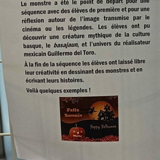 - Côté espagnol, vous pourrez admirer le processus de création des bandes dessinées sur le sport adapté faites par les élèves de la classe euro espagnol ainsi que des définitions illustrées sous forme de jeu de mots en espagnol inspirées de l’auteur Ramon Gomez de la Serna.